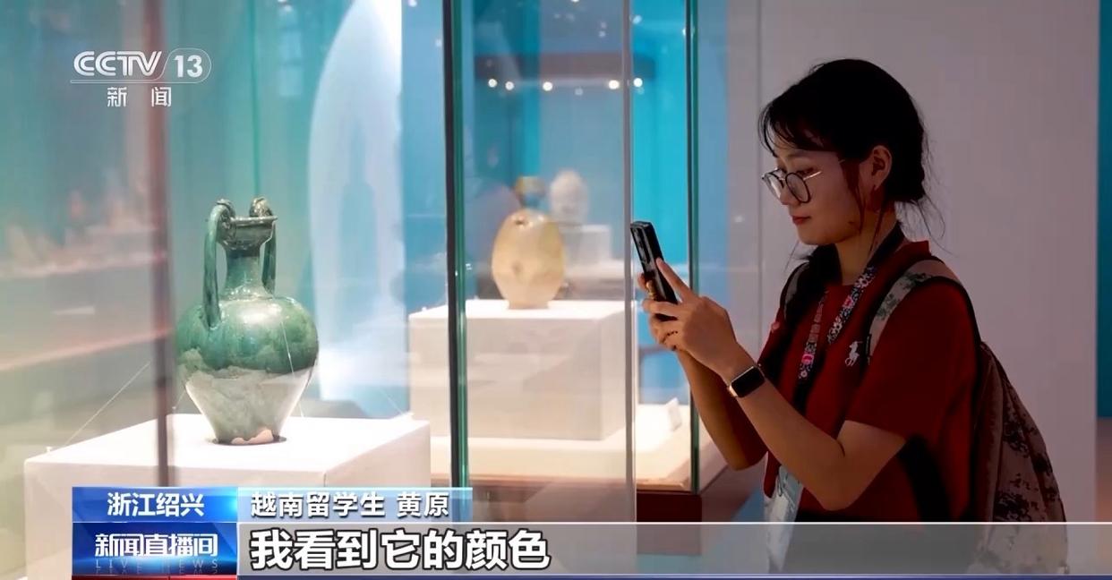 越南留学生 黄原:来到这里我学会了很多东西,我最喜欢这个瓶子,我看到它的颜色就觉得,古代人这么厉害,我很佩服他们。