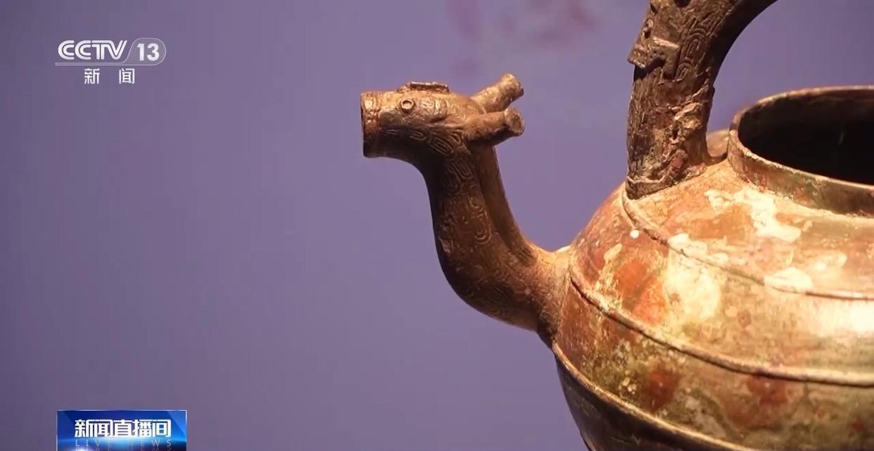 中国(海南)南海博物馆讲解员 黎津妃:龙首提梁的铜盉最早是用来装酒的容器。它的流部分,是一个龙首,它的提梁部分也是一条龙,在人们创造龙的时候要从新石器时代说起了,在那个时期的龙的形象并不固定。