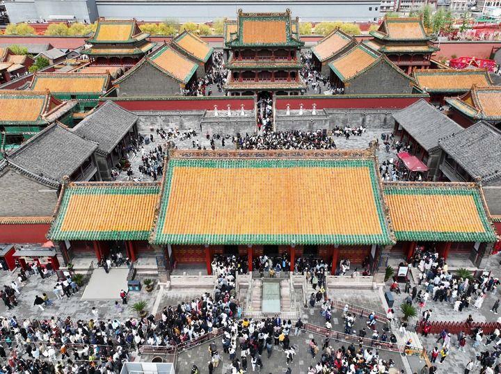 一大早,沈阳故宫大清门前已是人潮涌动。上海游客刘梅牵着女儿的手,流连在阳光下熠熠生辉的殿宇间,不时驻足欣赏、拍照。
