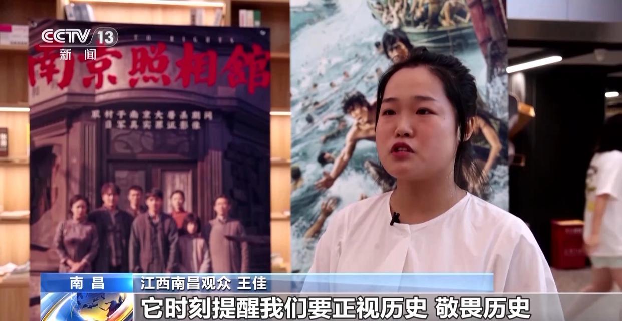 南京某影院工作人员 董璐:电影南京照相馆上映以后,票房和上座率都是领跑暑期档的。我们在影城的现场就可以发现,影片的观众年龄跨度是非常大的,很多观众都和我们表示这是一部让人泪流满面,而且是值得我们二刷和三刷的作品。
