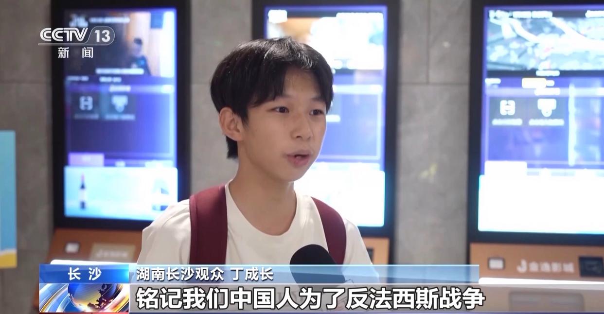 江西南昌观众 王佳:观看以后让我对于二战史观有了更加深刻、更加正确的一个认识,它时刻提醒我们要正视历史,敬畏历史。带孩子来的目的也是想让他知道,我们现在的美好生活是无数革命先烈用鲜血换来的,希望大家能够珍惜现在、珍惜和平。