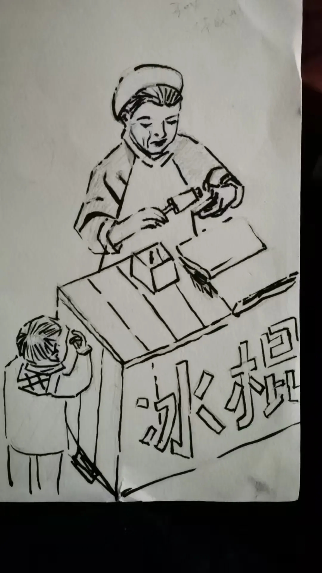 手绘图,卖白糖绿豆冰棒