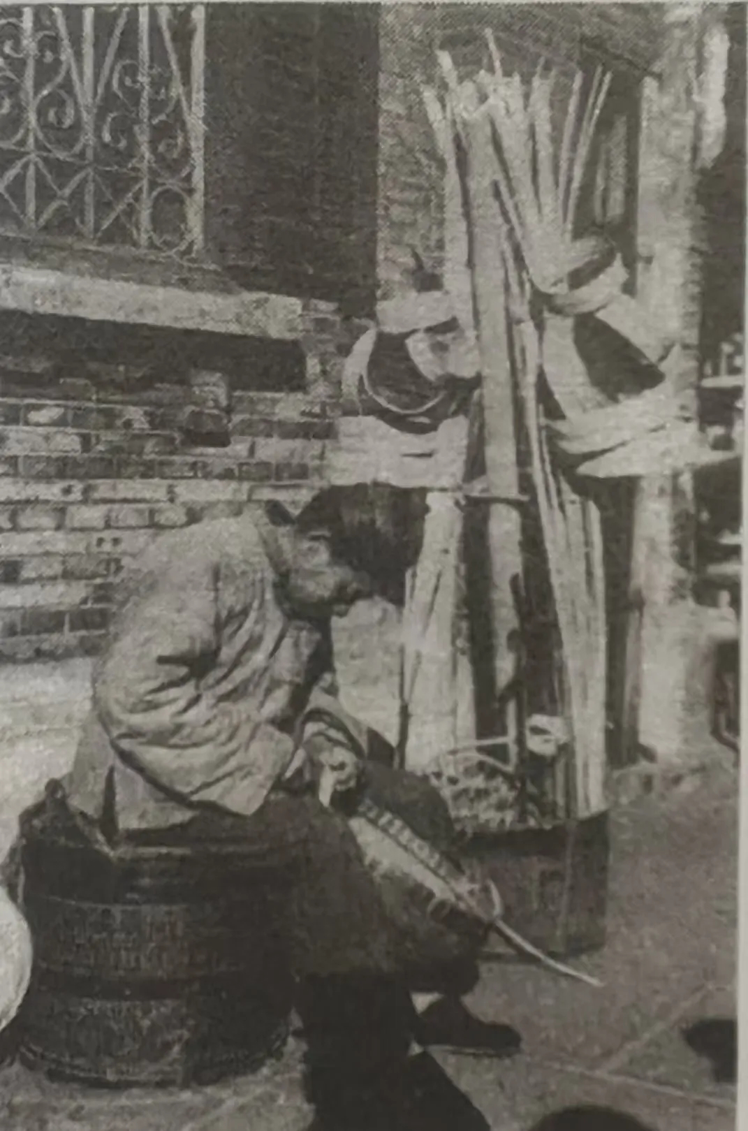 除了整伞的,修篾簟子的,还有一个行当比这两个职业生意更好,他们就是磨刀匠。道理很简单,刀剪是居家使用最频繁的物件。