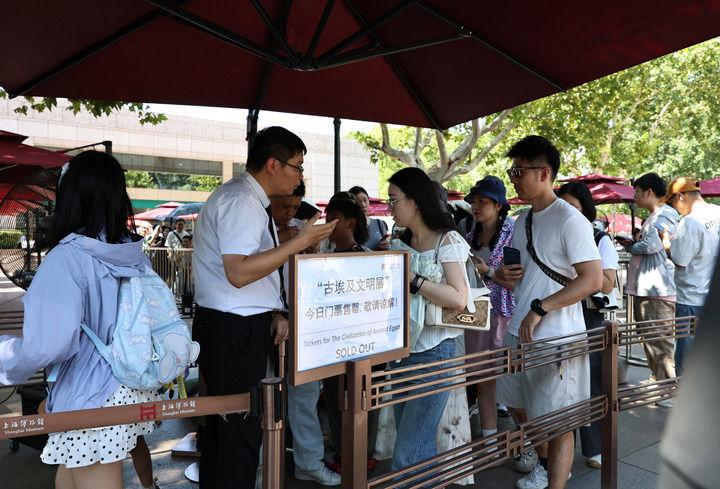 8月17日中午,“金字塔之巅”大展距离闭幕只有12个小时。从全国各地赶来“和法老告别”的观众不顾高温炙烤,在上海博物馆南门排起长龙,几乎完美复制了13个月前展览揭幕首日盛况空前的场景。