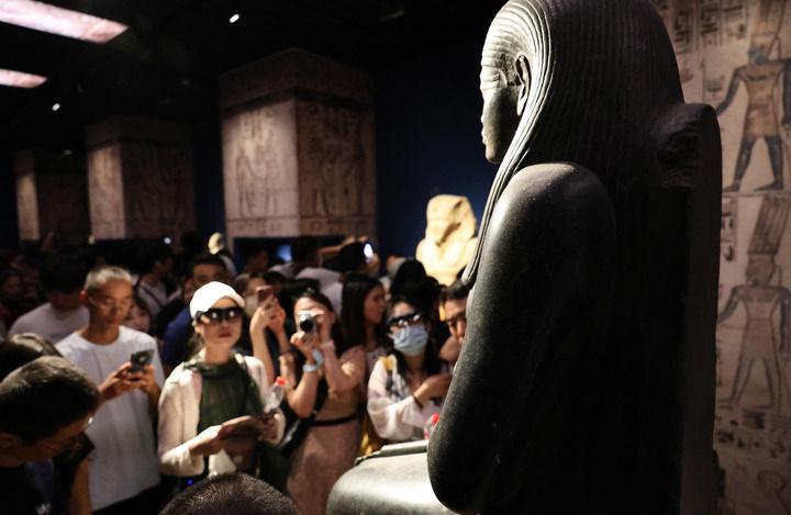 “金字塔之巅:古埃及文明大展”在13个月里吸引277万人次中外观众。本组图片均为新华每日电讯记者方喆摄