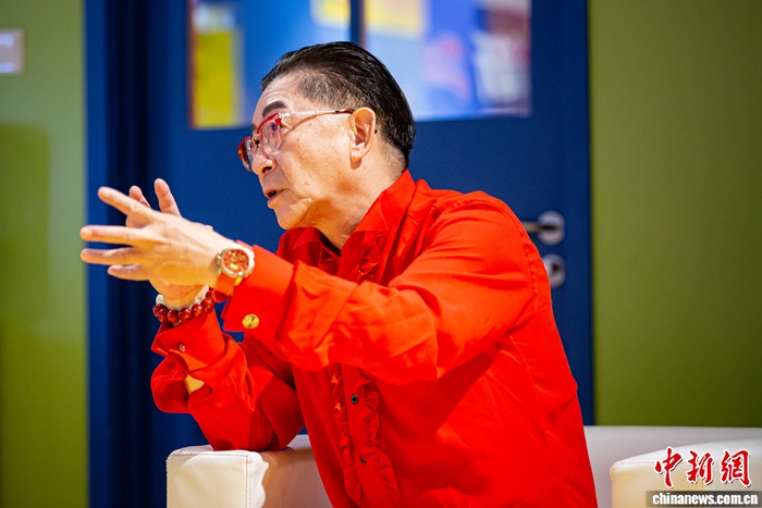 图为六小龄童分享见解。 中新网 记者 刘星晨 摄