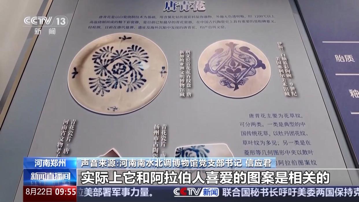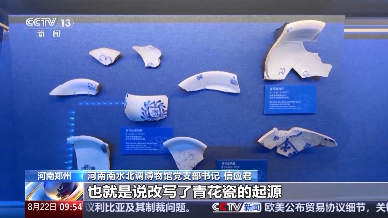 河南南水北调博物馆党支部书记 信应君:1975年发现的(国内)第一片唐青花瓷瓷片,经过考古的研究,才认定唐代青花瓷是存在的。也就是说改写了青花瓷的起源,把原来认知的元青花向前推了300多年。
