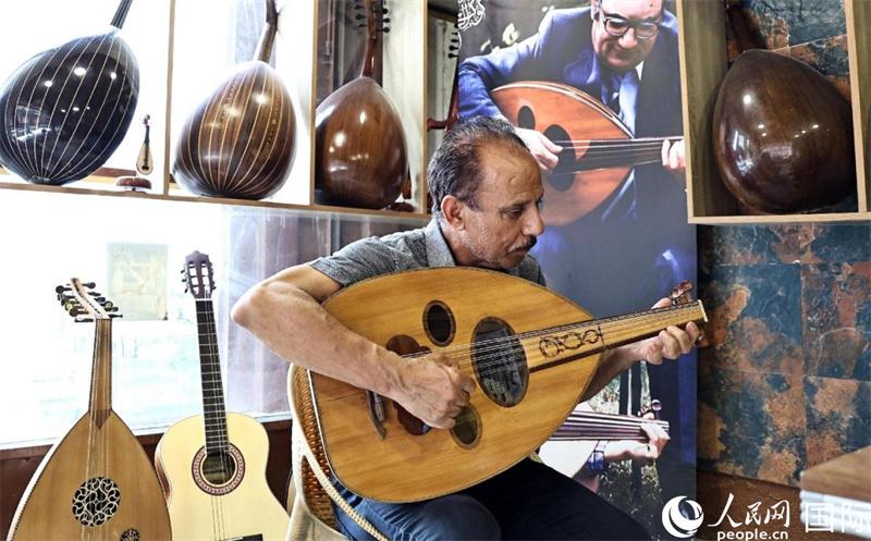 一名当地音乐家在演奏乌德琴。人民网伊纳斯·易卜拉欣摄