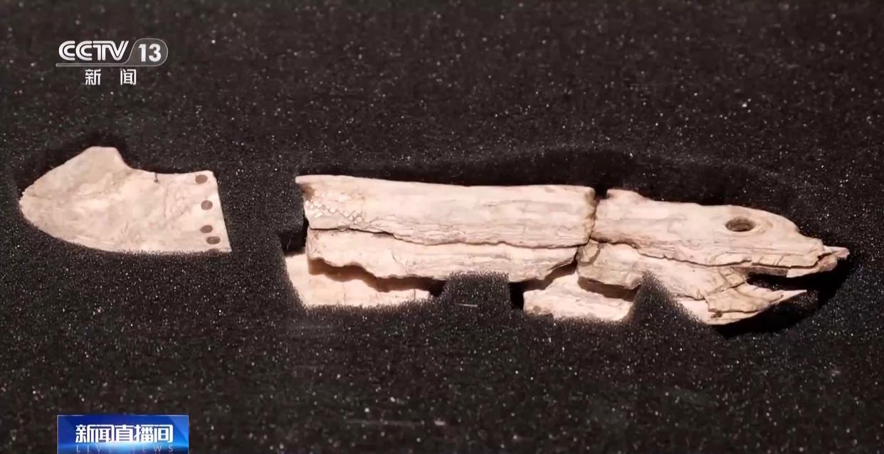 “蚌质”的龙形遗物,造型舒展,尾部断裂处刻画着鳞片。