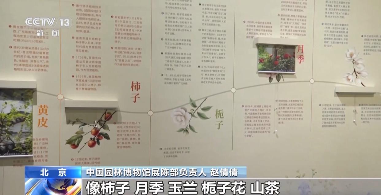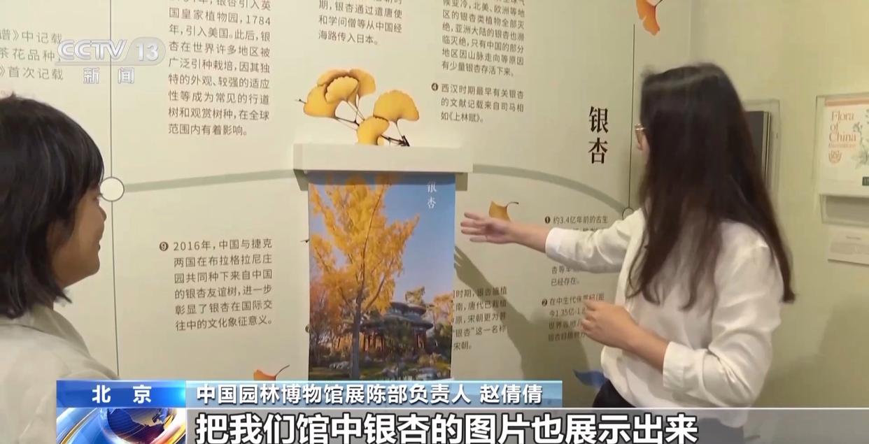 中国园林博物馆展陈部负责人赵倩倩介绍,展厅中的一面墙展示了中国原生植物传播路径,像柿子、月季、玉兰、栀子花、山茶,以及代表性的银杏。在互动装置里还有一个特别的设计,把馆中银杏的图片也展示出来。