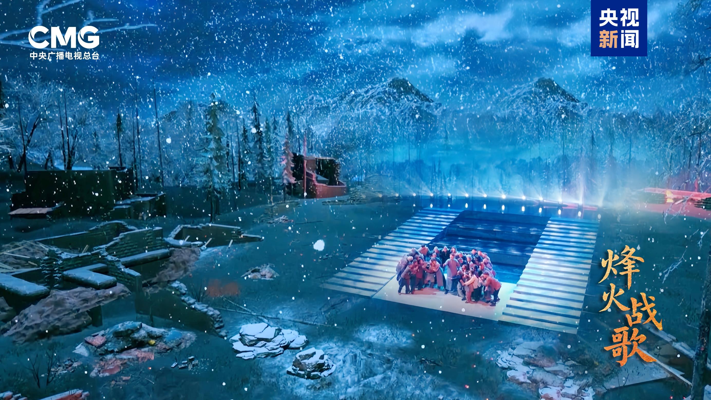 首期节目中,《露营之歌》还再现了抗联战士踏雪行军激扬豪迈的精神意志,舞台实景演唱与虚拟情景再现的衔接融合,让抗战时期的铮铮誓言跨越时空、直抵人心。