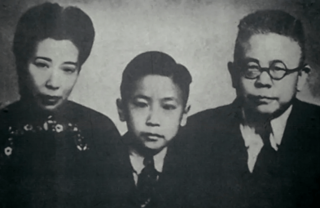 傅斯年与夫人俞大綵、儿子傅仁轨一家三口合影。