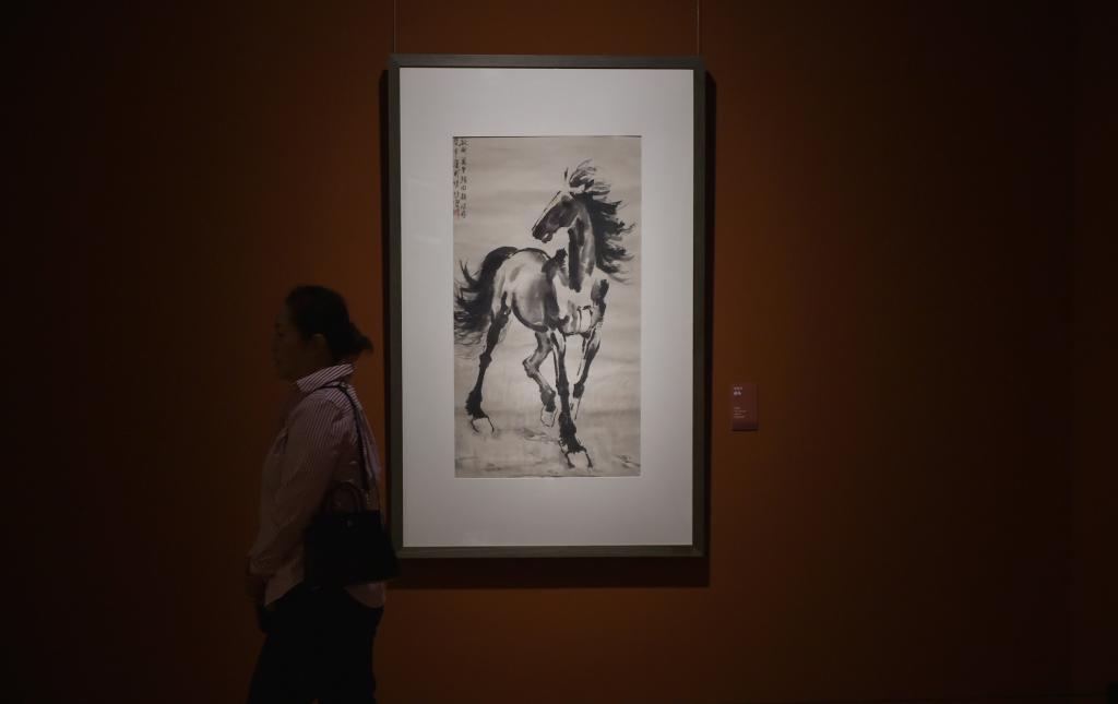 这是8月25日在中国美术馆拍摄的徐悲鸿创作的《战马》。