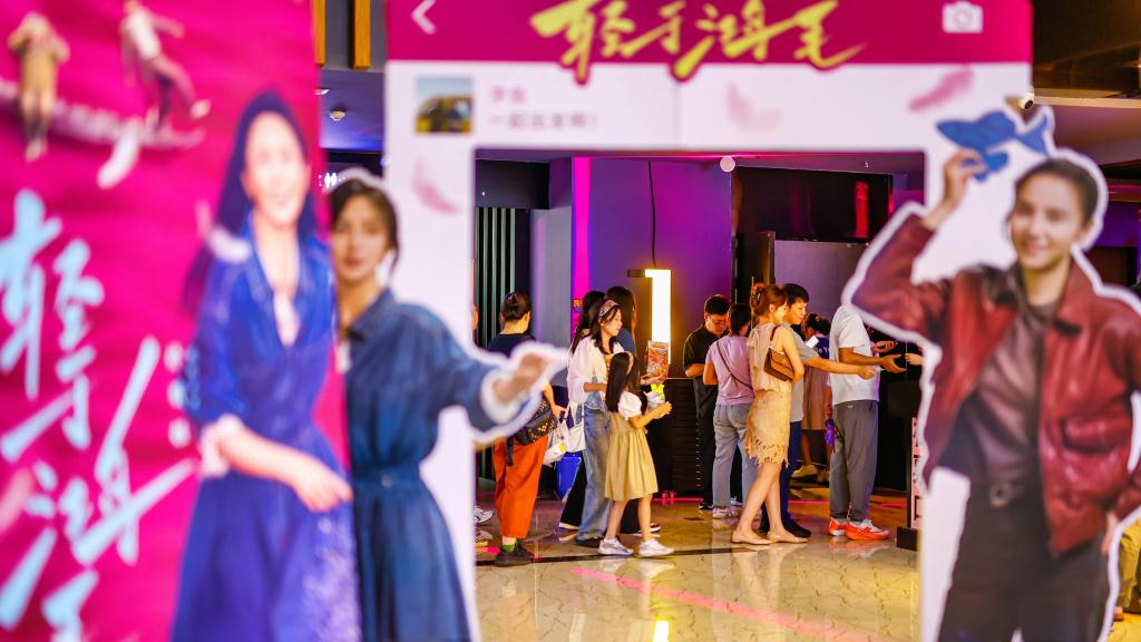 8月31日,观众在天津市滨海文化中心保利万和国际影城准备入场观影。新华社发(杜鹏辉摄)