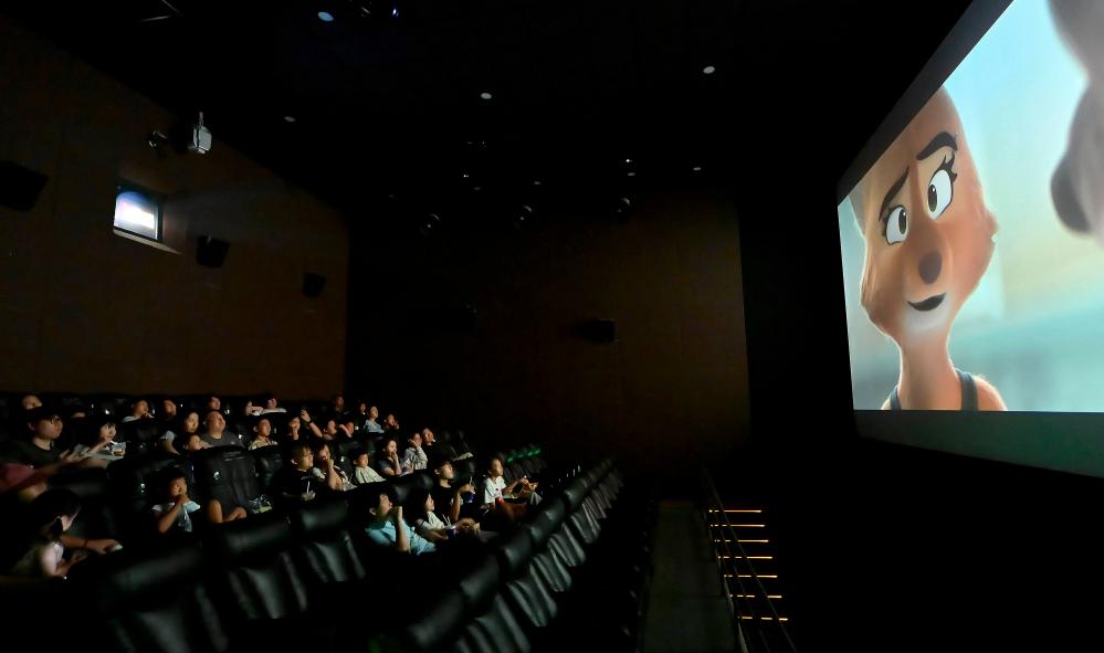 8月31日,家长带着孩子准备在武汉市江岸区一家影城观看电影。新华社发(赵军摄)