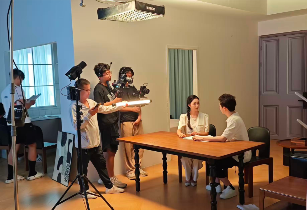 在长江视听微短剧产业基地进行拍摄的微短剧剧组。产业基地 供图