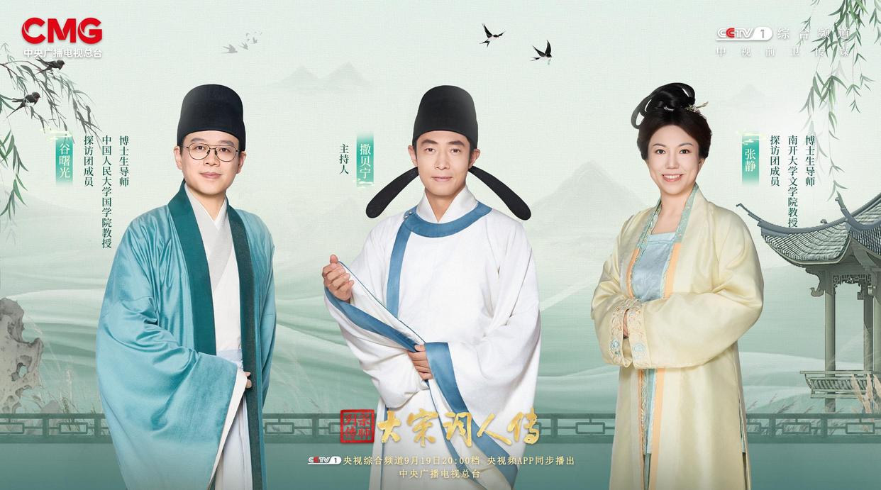 千年文脉奔涌不息,中华精神图谱光芒璀璨。宋词,这一中华文化星河中最瑰丽的星座之一,以细腻深情的笔触与胸襟开阔的挥洒,铸就了不可逾越的文学巅峰。访一代宗师,寻千年文脉,中央广播电视总台大型文化节目“宗师列传”系列再启华章——《宗师列传·大宋词人传》将于9月19日20:00档在总台央视综合频道(CCTV-1)与观众见面,央视频App同步播出。主持人撒贝宁将携手文化学者康震、郦波、杨雨、彭玉平、张静、谷曙光、黄晓丹等组成探访团,以沉浸式时空穿越的形式,叩开历史之门,亲历词坛宗师们跌宕起伏的生命轨迹,见证不朽词章的诞生瞬间。一场跨越千载的文化对话,即将在荧屏深情展开!
