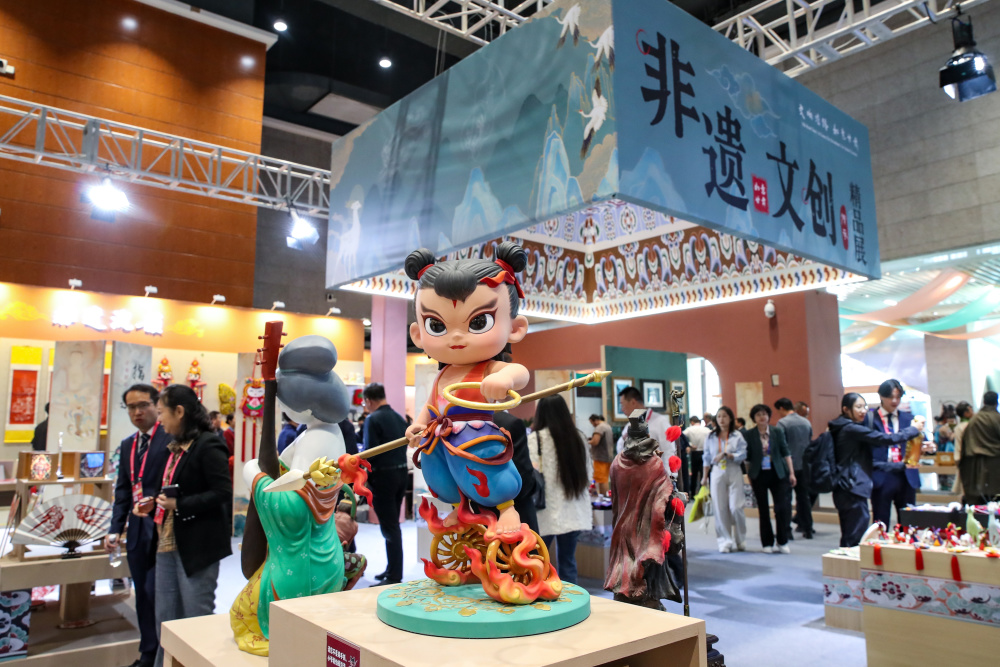 9月21日,与会嘉宾在第八届丝绸之路(敦煌)国际文化博览会上选购非遗文创产品。新华社记者 郎兵兵 摄
