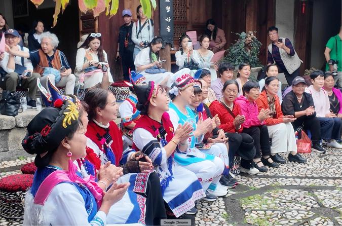 在云南省大理白族自治州剑川县,走访的记者团正赶上一年一度的“石宝山歌会”。作为白族的传统节会,活动以弹弦对歌为核心,包含白曲演唱、龙头三弦演奏、霸王鞭舞等传统艺术展演。剑川县是电影《五朵金花》中男主角阿鹏的故乡,当地依托阿鹏艺术团组建白曲宣讲团,汇聚民间白曲艺人,展演白族传统音乐。