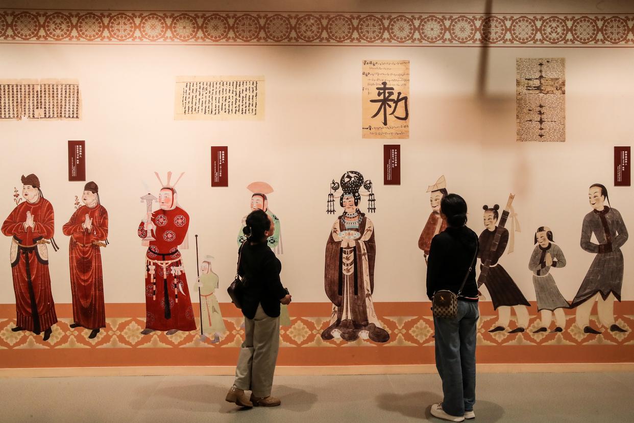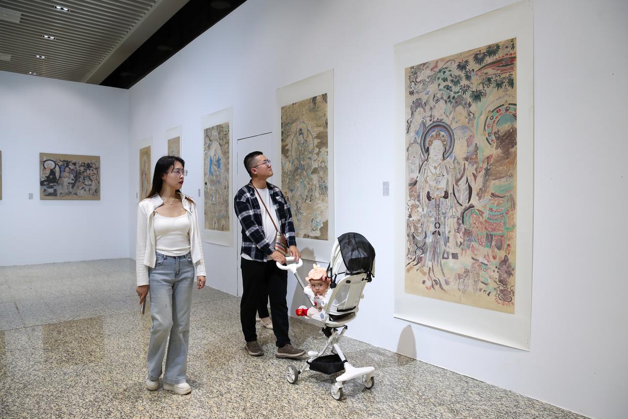 9月22日,游客在参观敦煌研究院“典范”“高地”建设成果展。新华社记者 郎兵兵 摄