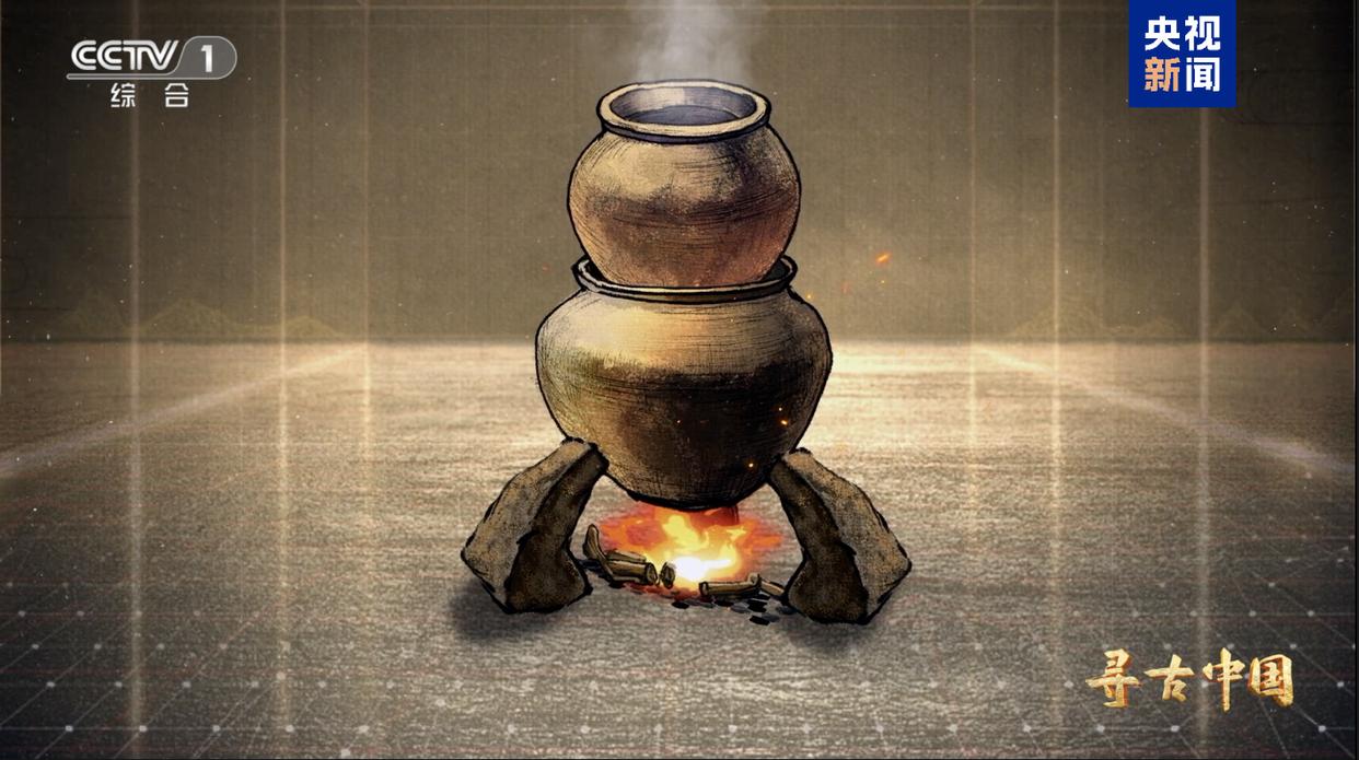 △动画展示陶甑与陶釜、陶支脚搭配使用