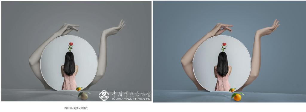 左图:《幻镜》系列之一,刘秀 作品。图片来源:中国摄影家协会官网。右图:《无相》系列之一,蒋燕秋 作品。图片来源:第15届上海市摄影艺术展览