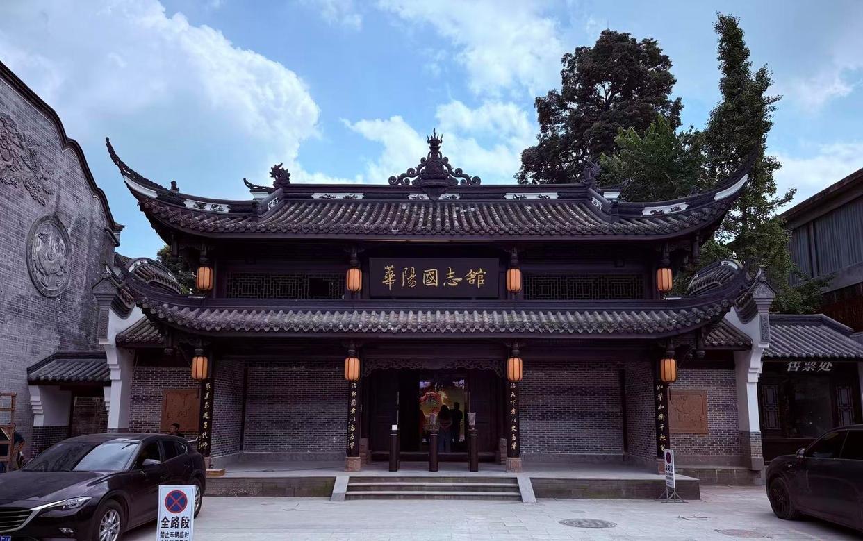 来到馆前,首先映入眼帘的是集王羲之的字而成的“华阳国志馆”匾额,两侧的一副楹联——“如鉴如衡千秋笔,求真求是百代师”,为崇州当代地方志专家张伯龄所撰,生动地刻画出了《华阳国志》的作者、被誉为“方志鼻祖”的东晋江原县(今崇州)人常璩的史学胸怀和作品价值。