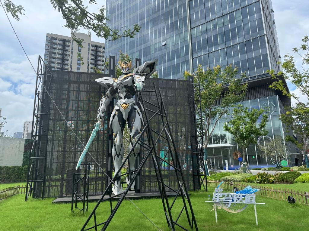7米多高的《崩坏:星穹铁道》萨姆机甲雕塑。新华社记者 程思琪 摄