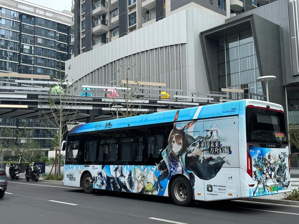 《明日方舟》主题公交“痛车”。新华社记者 程思琪 摄