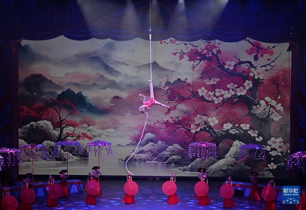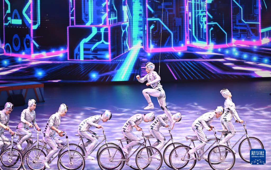 9月28日,演员在第二十届中国吴桥国际杂技艺术节开幕式上表演。新华社记者 牟宇 摄