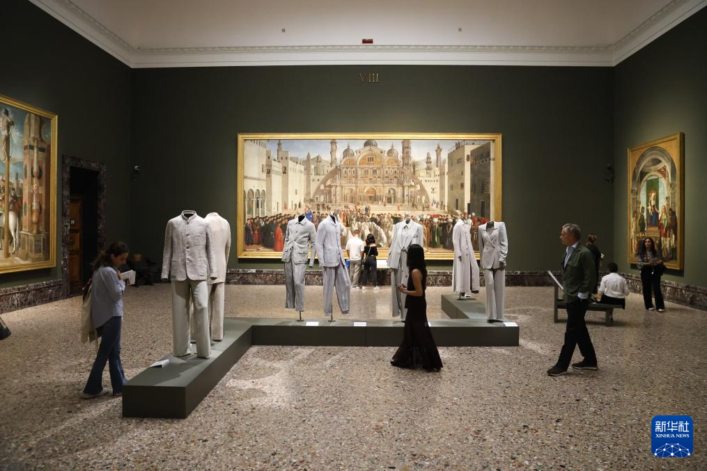 这是9月25日在意大利米兰布雷拉美术馆拍摄的乔治·阿玛尼经典作品展展品。