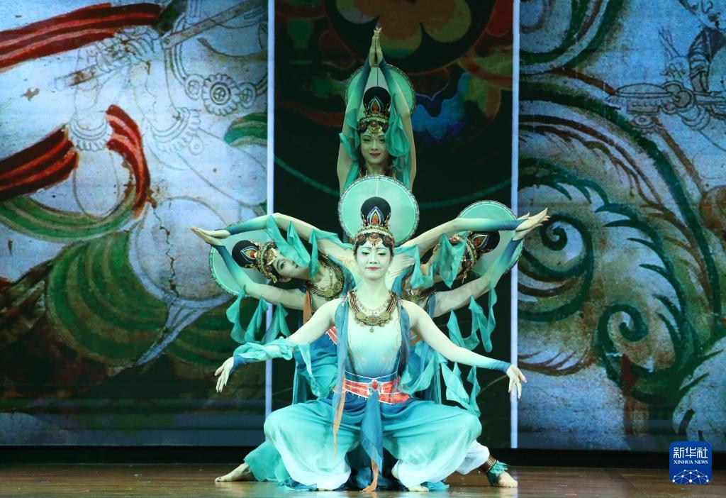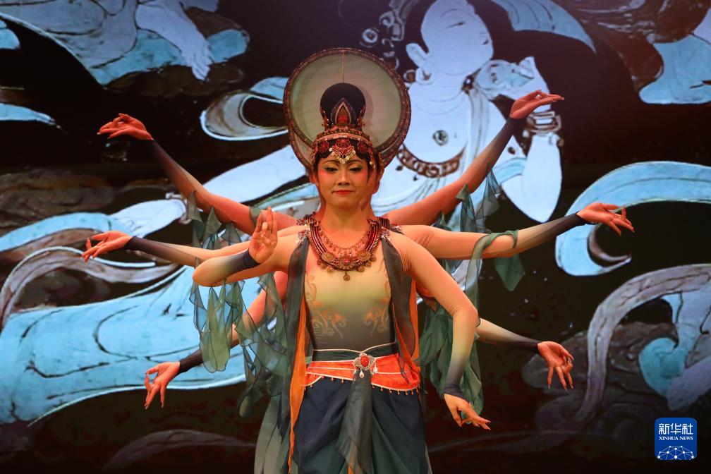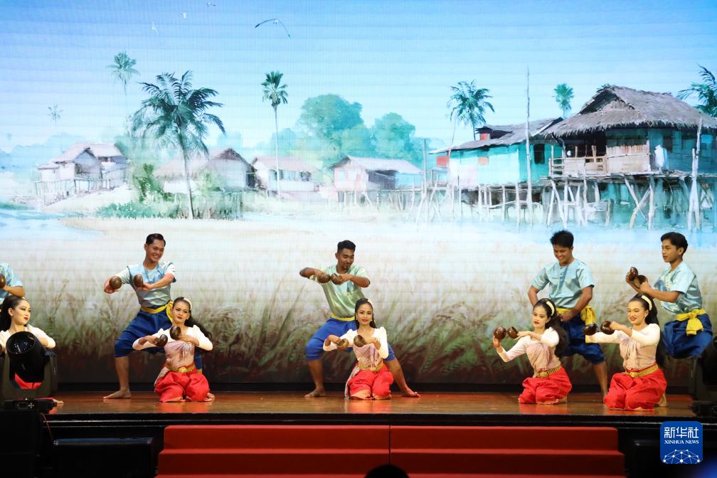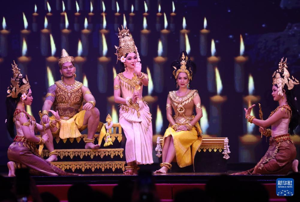 9月28日,柬埔寨表演团体在金边举行的中柬中秋联谊晚会上演出。新华社发(尼多拉摄)