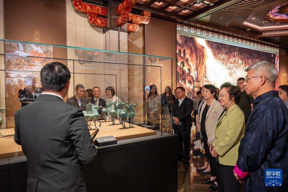 10月6日,嘉宾在澳门保利美高梅博物馆“丝路”大展参观。新华社发