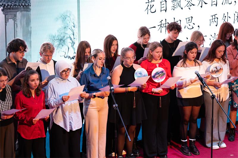 诗会由布鲁塞尔孔子学院学生苏利(François Sullivan)与蒙斯大学博士生白依依(Eloïse Bay)主持。两位比利时青年以中英双语介绍了中秋节的文化内涵与传统习俗。伴随柔美的音乐,来自多所学校的青年学生朗诵了《月下独酌》《八月十五夜湓亭望月》《秋霄月下有怀》《登鹳雀楼》《静夜思》等脍炙人口的中国诗篇,并用法语和英语分别演绎了法国诗人魏尔伦的《月光》和美国诗人朗费罗的《丰收之月》。中外诗句交相辉映,展现了诗歌跨越国界、联通心灵的独特魅力。
