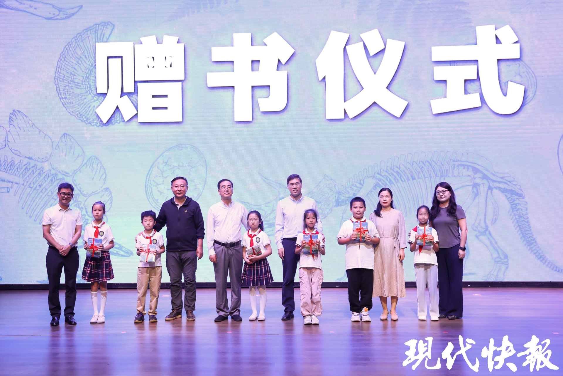 该书由中国科学院院士、南京古生物所研究员戎嘉余牵头,30余位古生物学家共同撰写,以地球生命演化为主线,通过生动故事与科学图解,带领读者穿越时空,一起探索远古生命演化的奥秘。随后,王小锋、赵方臣、詹庚申、濮晓逸、印小强等领导共同为新书揭幕,并将首批图书赠送给现场学生代表,鼓励孩子们“读好书、爱科学、探自然”。