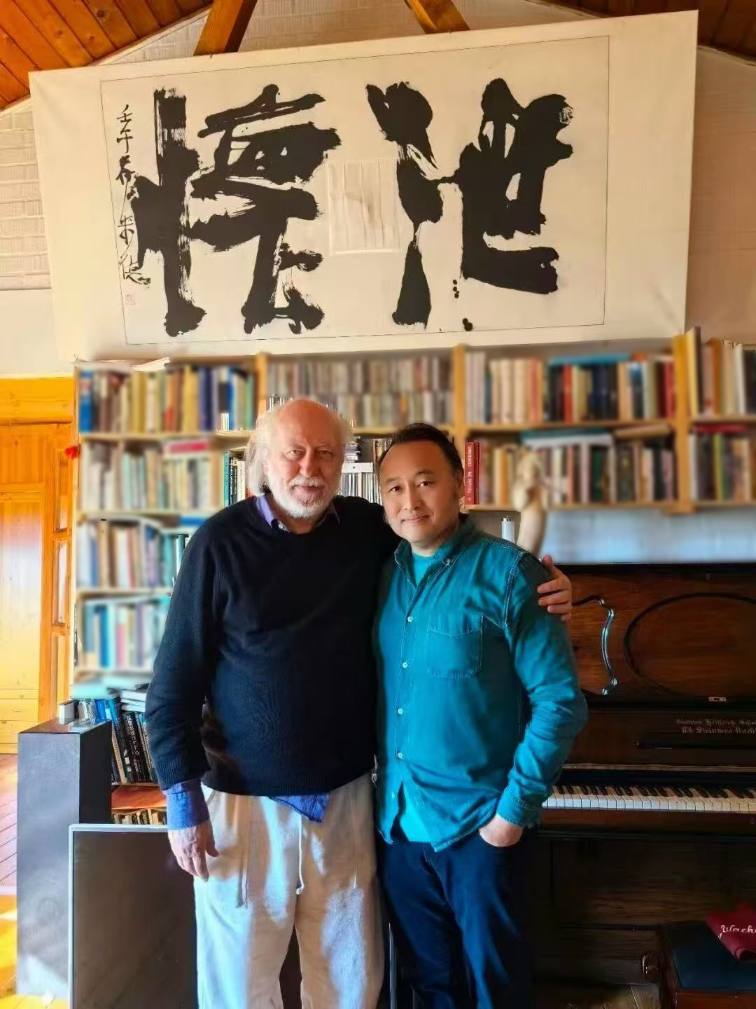 近日,2025诺贝尔文学奖颁出,71岁的匈牙利作家拉斯洛·克拉斯诺霍尔卡伊获得殊荣。有中国粉丝发现,在他家的书房里,竟悬挂着一幅由中国书法家曾来德23年前书写的书法作品。