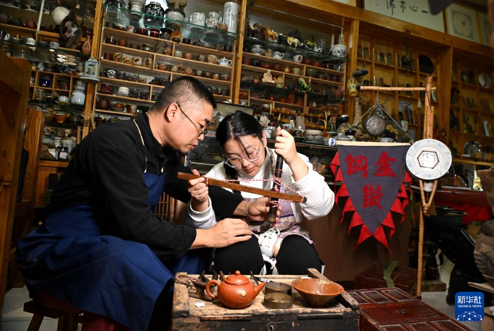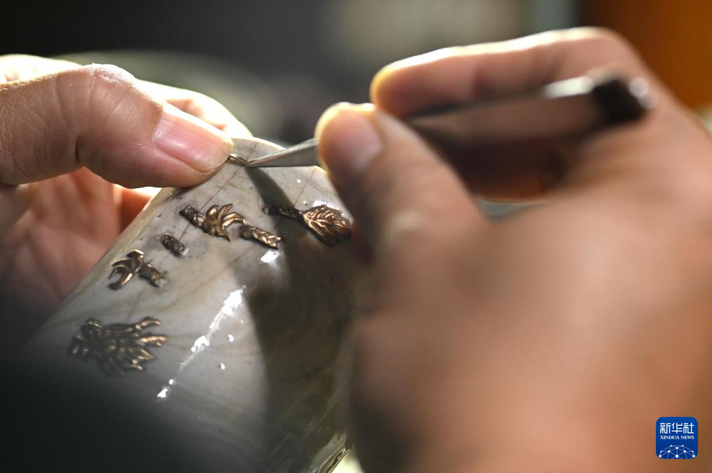 30多年来,李军航在修复陶瓷文物或日常器皿的同时,还将锔刻瓷技艺带进校园和社区,让更多人了解中国传统文化,感受非遗技艺的魅力。