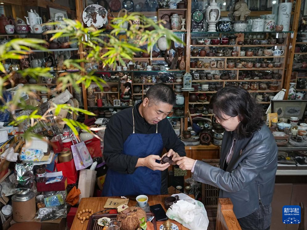 10月11日,在位于河北省石家庄市桥西区的工作室内,李军航在接待顾客。