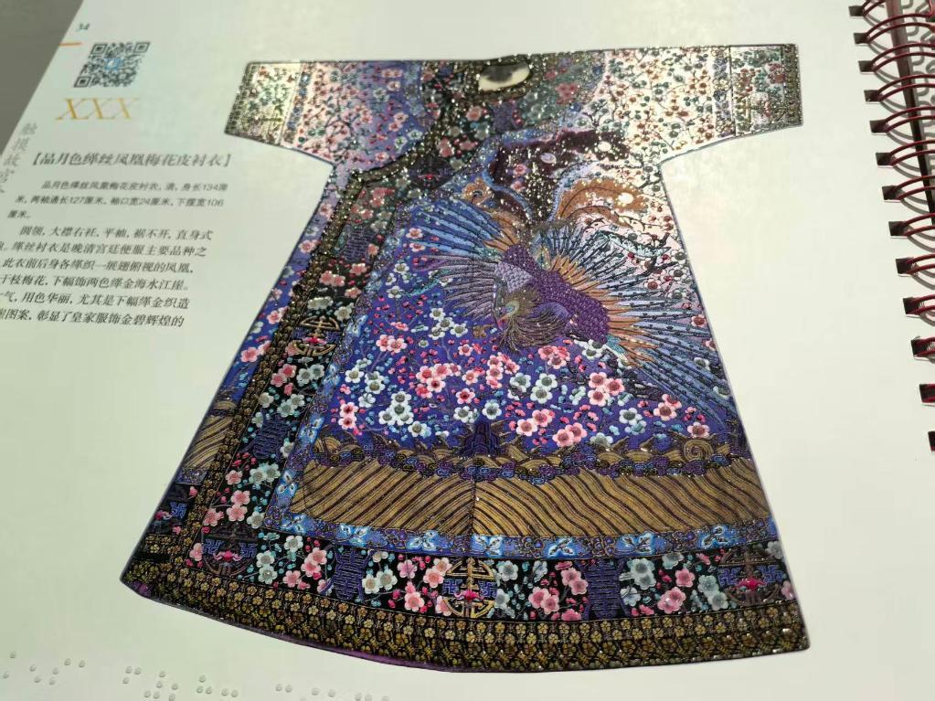 10月13日,《触摸故宫珍宝》在中国盲文图书馆发布。清宫华服上的花枝和禽羽得以用指尖触摸。新华社记者魏冠宇 摄