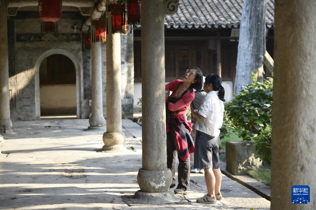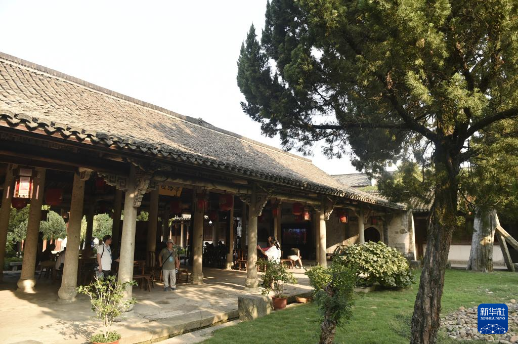 10月13日,游客在郑义门古建筑群参观。