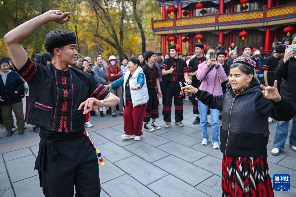 10月27日,一场民族舞蹈快闪活动在新疆乌鲁木齐市人民公园热闹开展。第十五届中国舞蹈荷花奖民族民间舞参赛队、云南省歌舞剧院的舞蹈演员现场演绎经典舞蹈片段。活动还特别邀请市民和游客参与互动,让大家近距离感受民族舞蹈魅力。