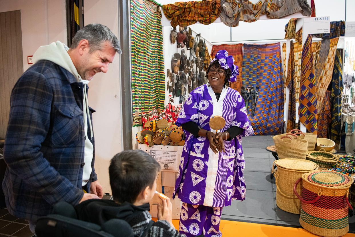 11月5日,人们在德国柏林举办的“柏林巴扎”上和加纳展商交流。新华社记者 张豪夫 摄