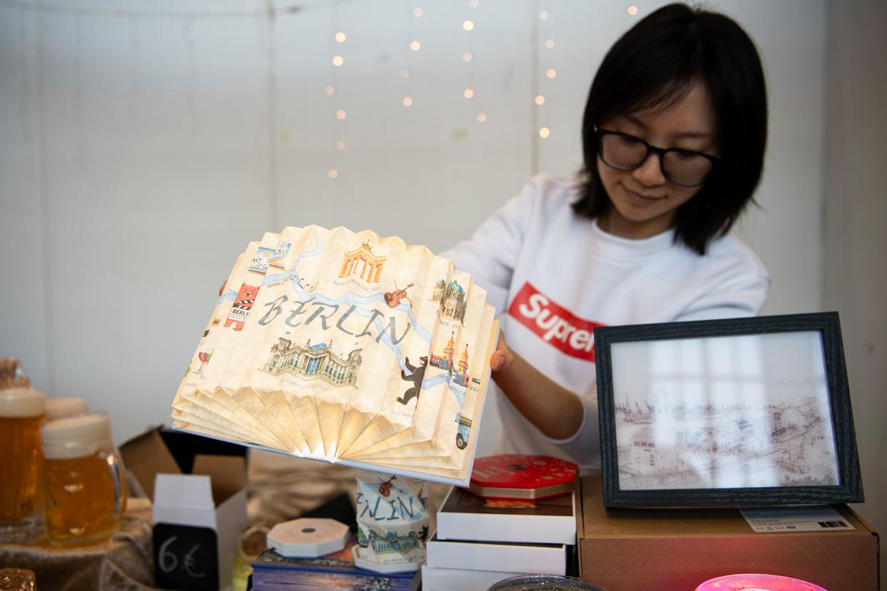 11月5日,中国展商在德国柏林举办的“柏林巴扎”上展示手工文创产品。新华社记者 张豪夫 摄