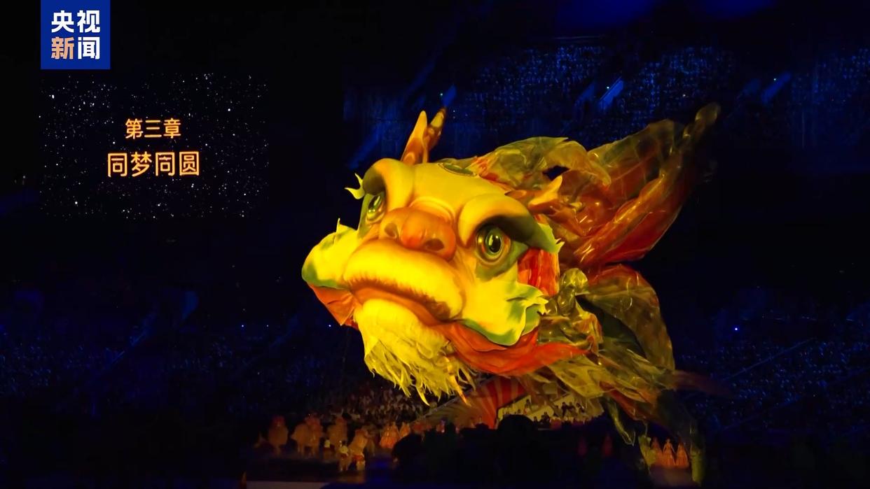 十五运会开幕式上,操控这条刷爆全网的巨兽鳌鱼的,不是无人机,也不是塔吊,更不是全息投影,它是以竹子为骨架,配上气囊、彩绘,再用传统风筝线操控,回归千年非遗本真。鳌鱼的全身128片变色鳞片流光溢彩,龙须随风自然飘洒,飘逸灵动,如梦似幻。