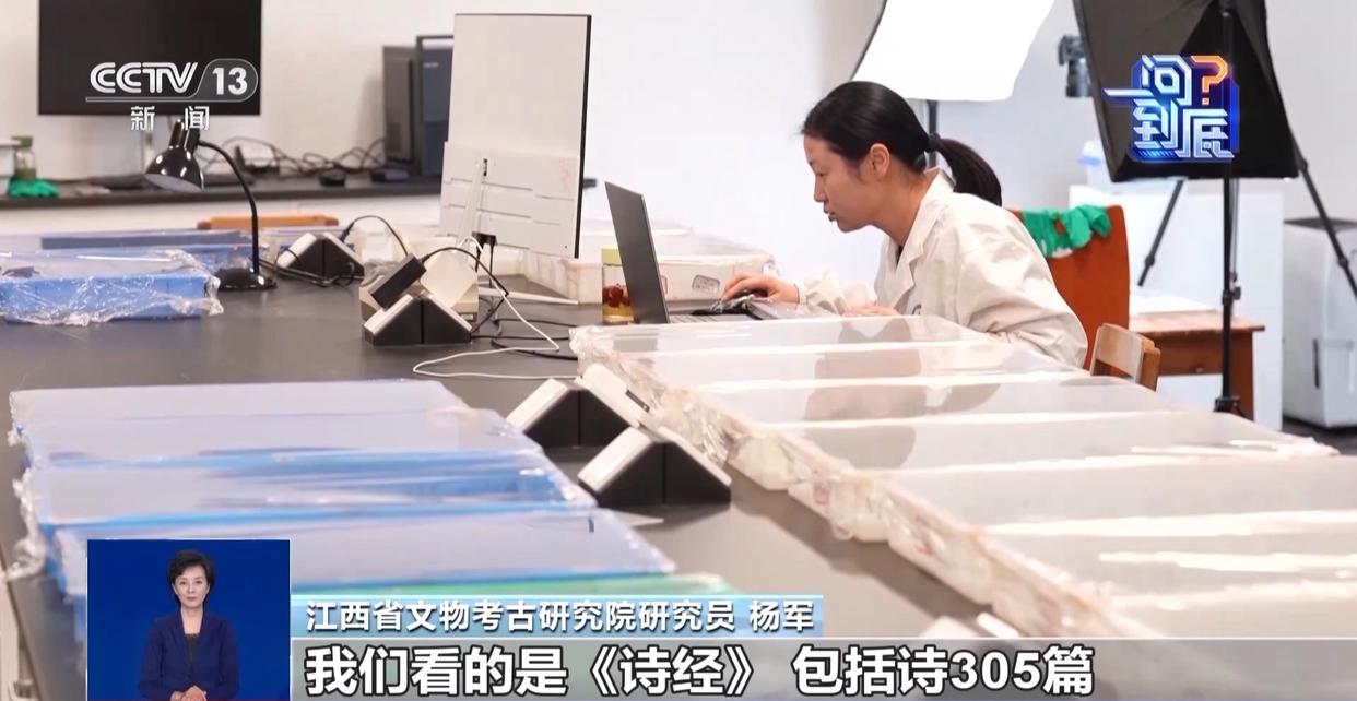 江西省文物考古研究院研究员 杨军:当时在第一次红外扫描,还有泥的时候,通过红外扫描可以看到,我们看的是《诗经》,包括诗305篇,这些诗经的内容也看到了。