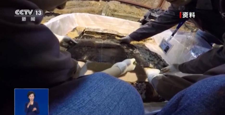 江西省文物考古研究院研究员 杨军:当时出土的时候它就跟一团泥一样的,它是出在海昏侯墓的藏椁有一个文书档案库里面,因为整个海昏侯墓它是由主椁室、藏椁,包括主椁室和藏椁之间的过道这几个部分组成,它这个竹简就出在海昏侯墓西藏椁的文书档案库。