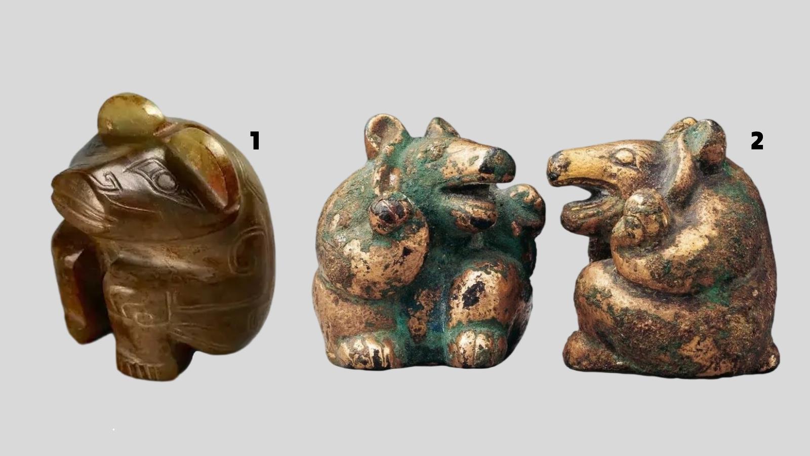 1:玉熊 商代 殷墟博物馆藏2:鎏金熊形青铜镇 汉代 中国国家博物馆藏