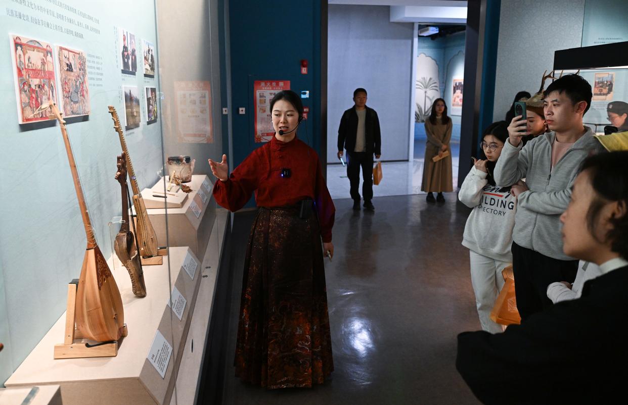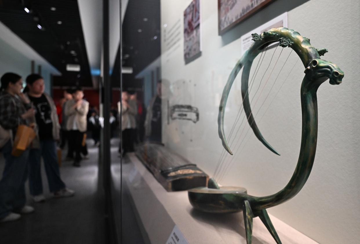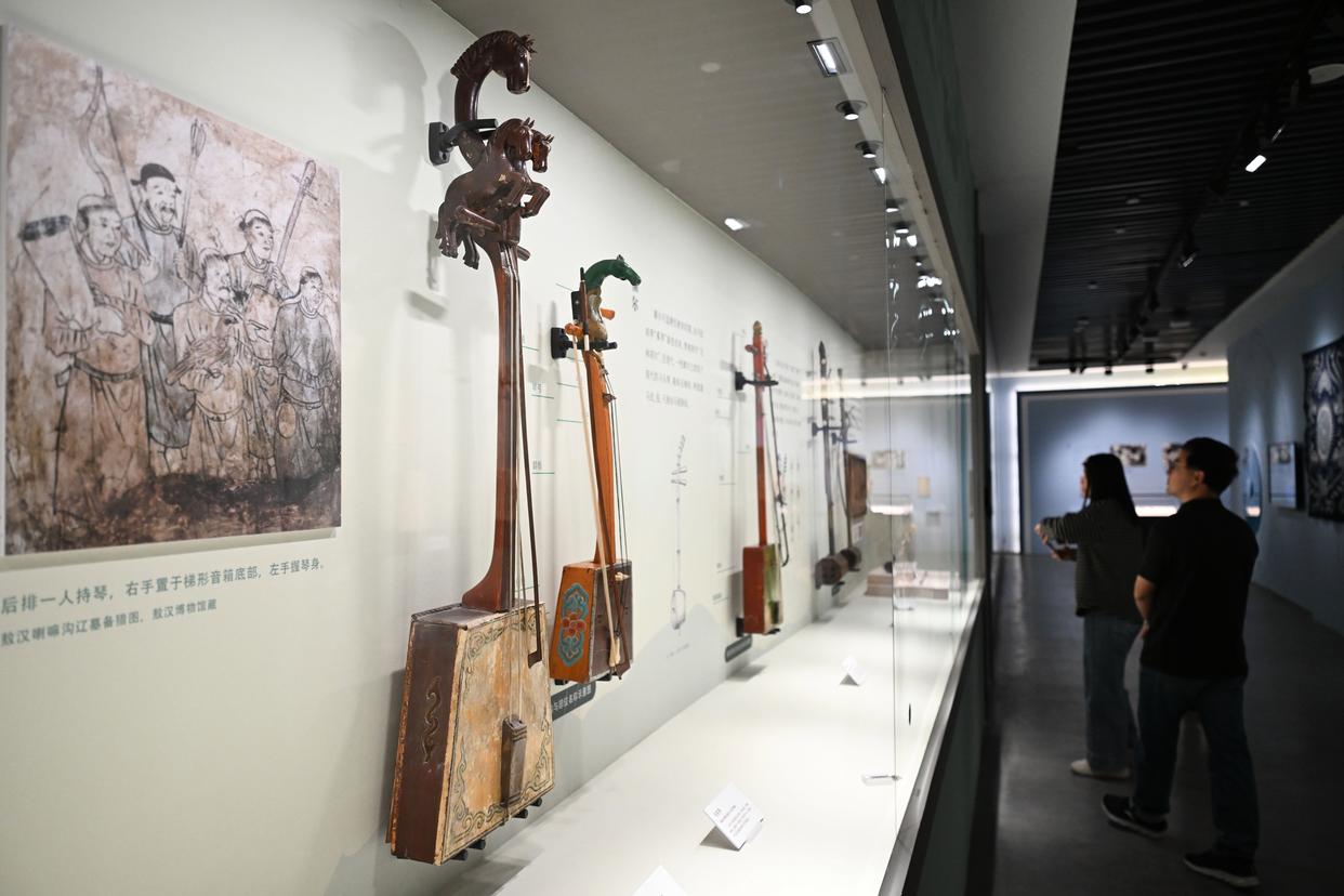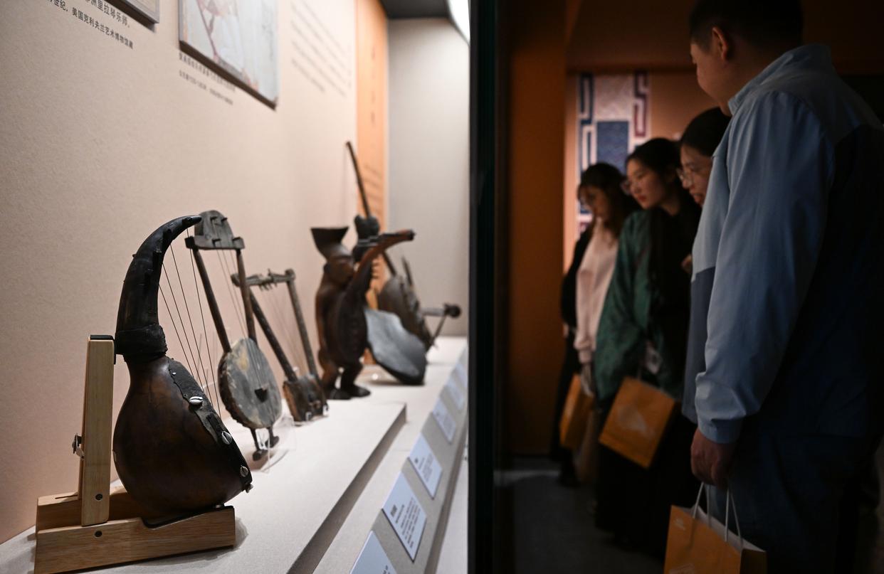 11月29日,参观者观看现场展出的乐器火不思。新华社记者 邓华 摄