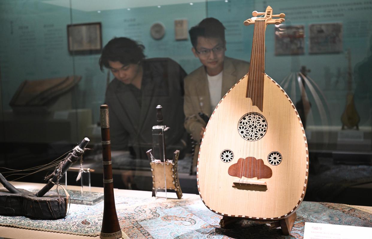 11月29日,参观者观看展出的乐器乌德琴。新华社记者 邓华 摄