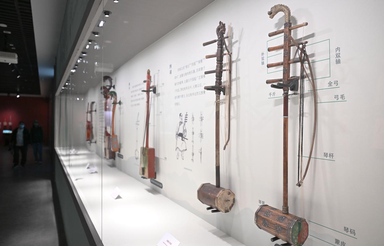11月29日,参观者观看展出的乐器三头马头琴。新华社记者 邓华 摄